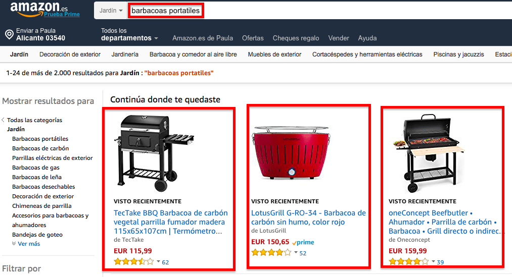 Pongamos que queremos excluir este producto de la llamada a los resultados de Amazon de una categoría: