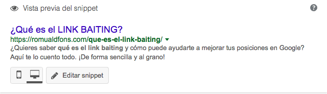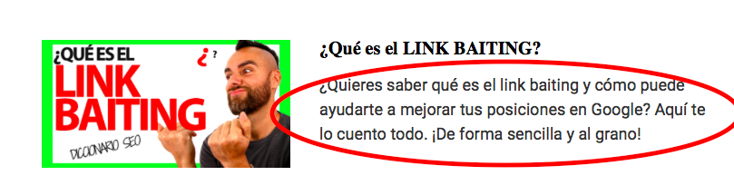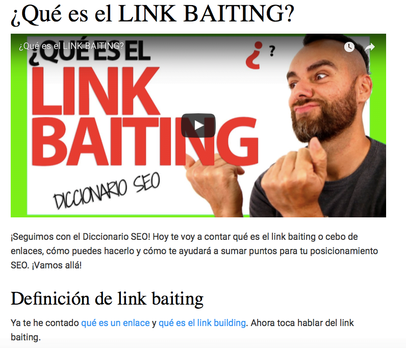Por ejemplo, esta página dentro está pensada para posicionarse para «qué es el link baiting»: