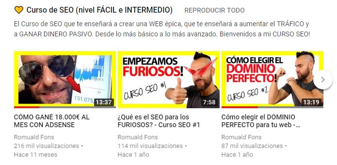 Las playlist pueden clasificarse para aparecer en los resultados de búsqueda. Si lo consigues tendrás unas jugosas visitas y previsiblemente buenos datos de tiempo de visionado.