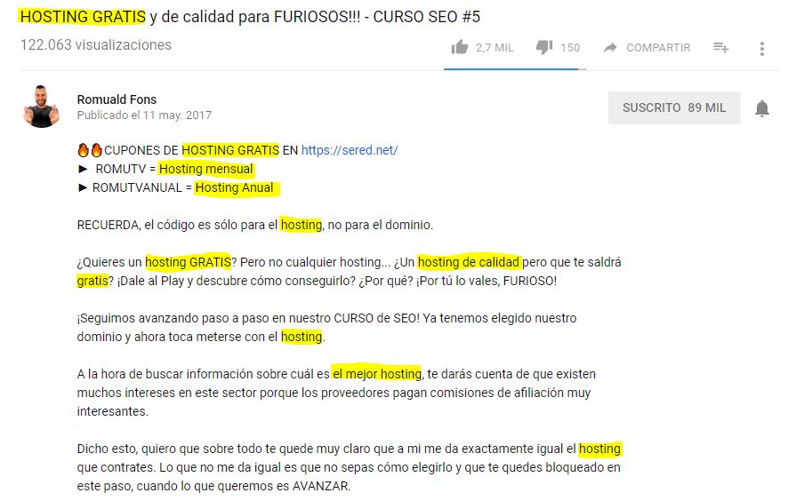 Y muy importante: si quieres posicionar tus vídeos no incluyas en la descripción un enlace para captar suscriptores o un link hacia tu web porque eso hará que muchos cliquen y se vayan del vídeo, con lo que bajará tu retención de audiencia, un factor clave de posicionamiento en Youtube, como veremos en el apartado dedicado a la optimización SEO.