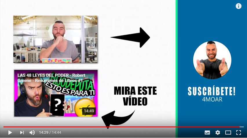 Es muy habitual que quien salga en el vídeo llame la atención de alguna forma al usuario sobre la aparición de la tarjeta, llamándole a la acción para que la use. Obviamente, para hacer esto debes saber en qué momento exacto va a aparecer.