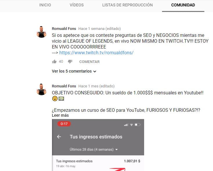 Has de procurar crear una comunidad en torno a tu canal. Un grupo numeroso de participantes que interactúan con tus contenidos dará señales a Youtube de que tu canal está vivo y beneficiará a su posicionamiento.