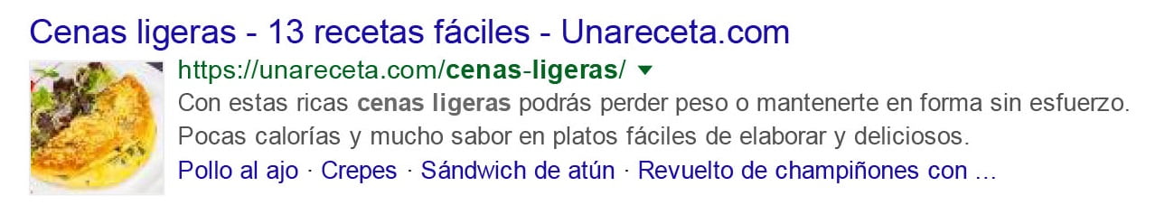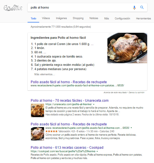 Nos hemos puesto por encima, y además, aquí también estamos utilizando los rich snippets, justamente porque tenemos una receta abierta.