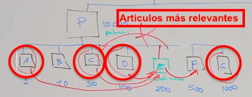 Vamos a poner, por ejemplo, que según Google estos artículos más relevantes son el A, el C, el D y el G.
