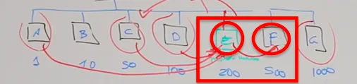 En este último caso, marcamos que hemos puesto un enlace desde E hacia F.