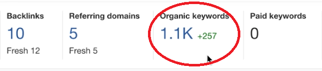 Si vamos a Ahrefs podréis ver que a nivel de palabras orgánicas que detecta se está llevando ya 1.100. Y este último mes ha subido 257 keywords nuevas posicionándose.