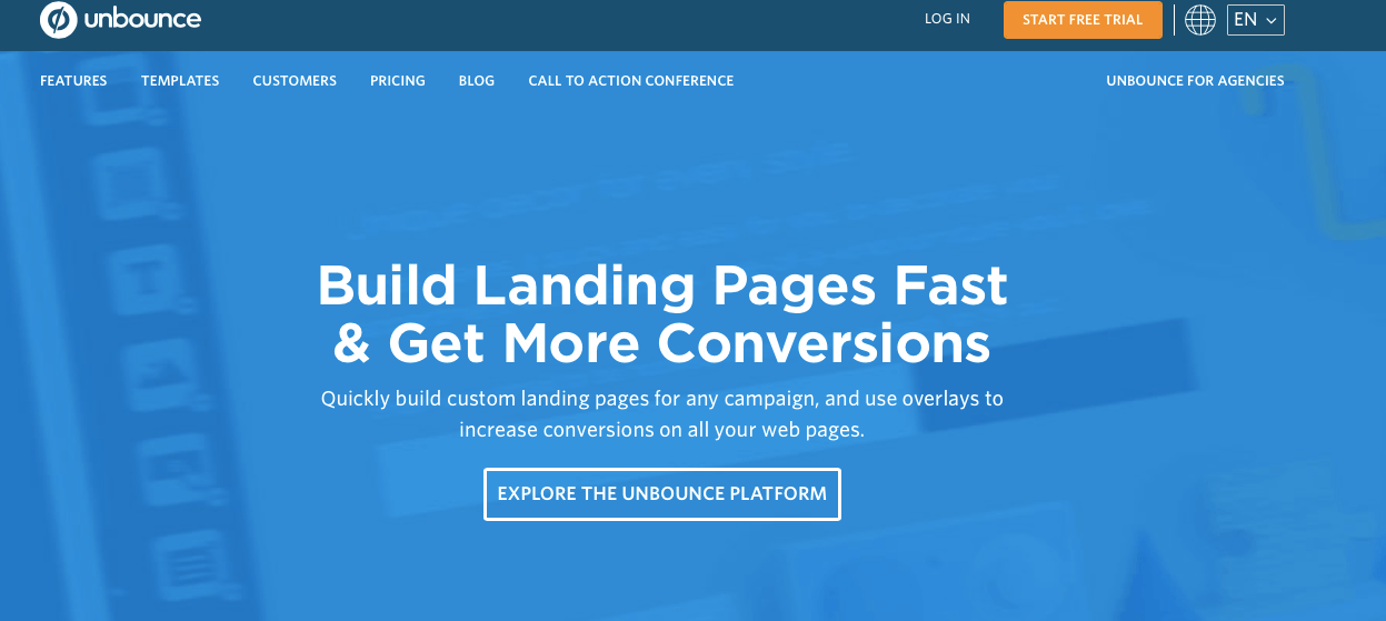 La herramienta Unbounce integra herramientas de conversión para optimizar tus landing pages.