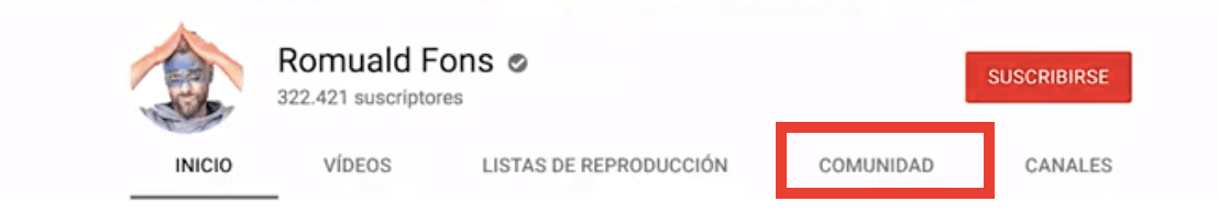 Nos vamos a nuestro perfil y clicamos en la pestaña COMUNIDAD.