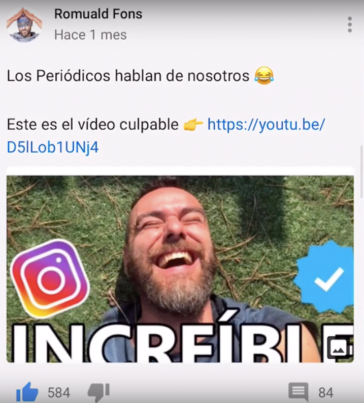 Cuando publiques un vídeo y hayan pasado 12 horas pero antes de que transcurran 24 horas, tienes que hacer una publicación en tu pestaña COMUNIDAD con el enlace al vídeo.