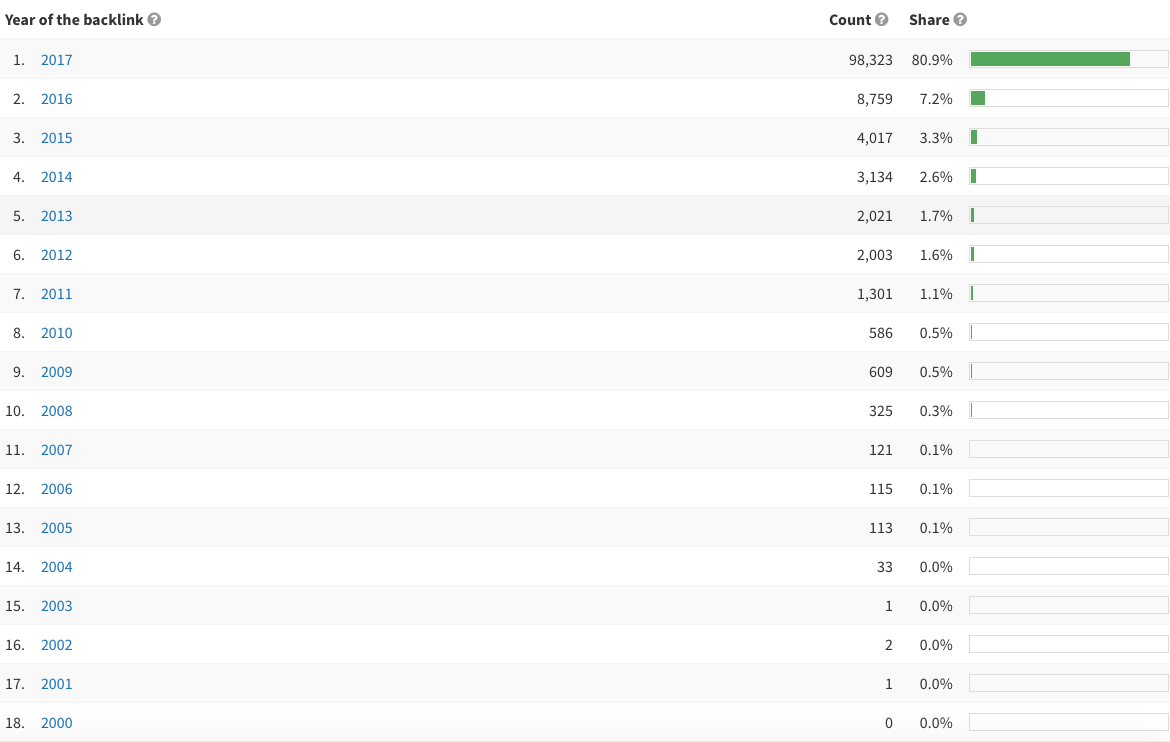 Con la opción «Link Age» puedes llevar un control de la antigüedad de los enlaces entrantes.