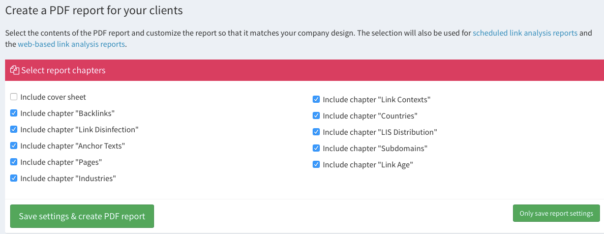 Te da la opción de filtrar la información que quieres para tu informe en PDF. Es decir, si por ejemplo sólo te interesa el informe de los enlaces malos o sospechosos, sólo tendrás que seleccionar ese capítulo, guardar y el informe sólo incluirá ese análisis.