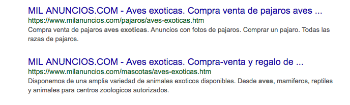 En un siguiente paso, ya sí le vamos a meter más texto para posicionar la Home para más palabras clave relacionadas pero, de momento, con un par de líneas se ha posicionado para la palabra clave principal: «aves exóticas».