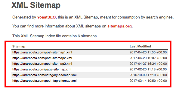 Aquí tienes un ejemplo de sitemap de mi web unareceta.com: