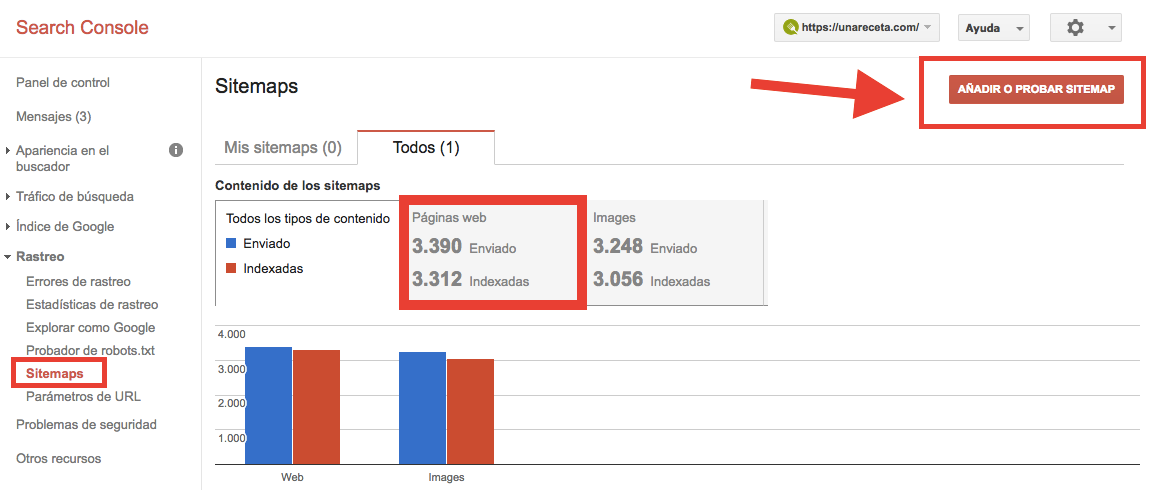 Esto lo puedes hacer subiendo tu sitemap a Google Search Console, que es una herramienta gratuita del propio Google que nos da mucha información sobre el estado de nuestro sitio web. Esto es algo muy útil y una práctica que te recomiendo.