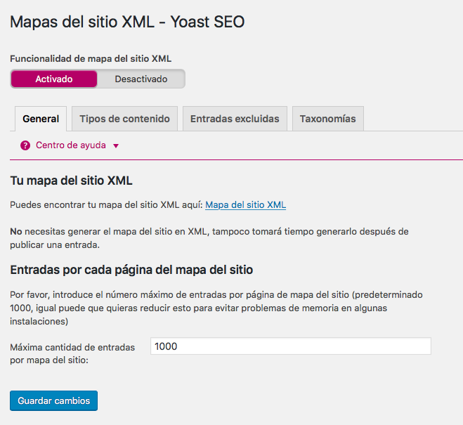 Ya lo tienes. Desde aquí podrás gestionar fácilmente tu sitemap.