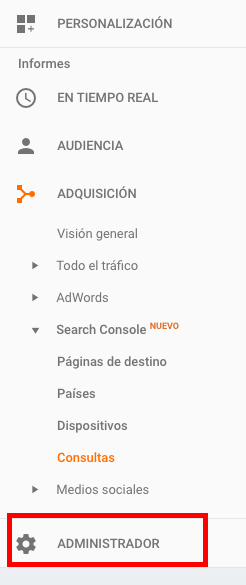 Para ello, desde el menú ADMINISTRADOR de la barra lateral izquierda, accede «Objetivos», en la tercera columna: