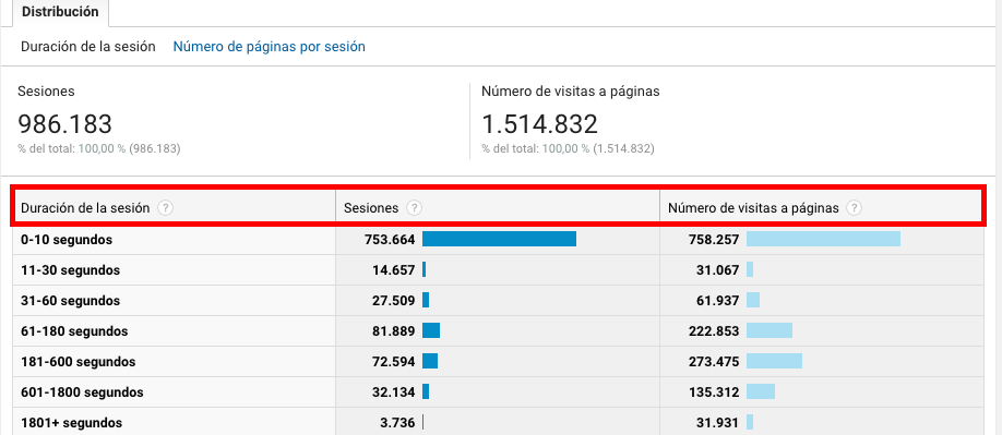 - Páginas / sesión: promedio de páginas vistas en cada sesión (visita)